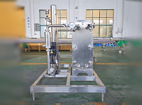 以人字形波纹板片组成的板式换热器为核心,冷热流体在板片两侧逆向流动实现换热。物料经预热段升温后进入杀菌段,在设定温度(最高达 150℃)下维持杀菌时间,再通过冷却段降至目标温度。板片波纹结构增加流体湍流程度,提升传热效率,同时系统配备自动温控装置与压力监测,确保杀菌温度与时间精准可控,符合卫生级杀菌标准。